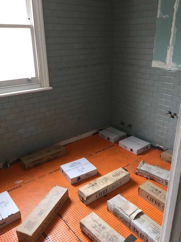 • waterproofing to floor with Dittra matting and Mapei waterproofing kit