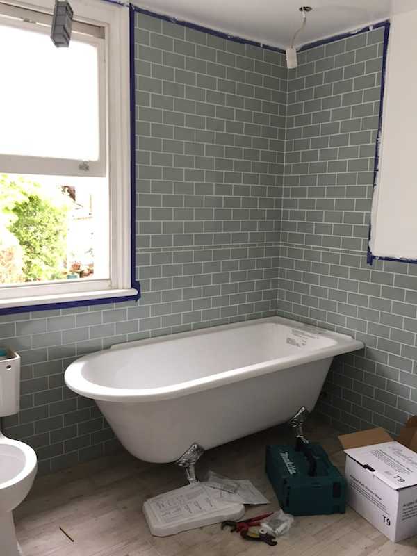 • tiling to walls and floor with tiles supplied from Tons of Tiles  https://www.tonsoftiles.co.uk