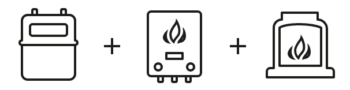 Gas meter + gas boiler + gas fire