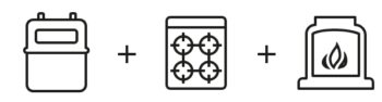 Gas meter + gas hob or cooker + gas fire