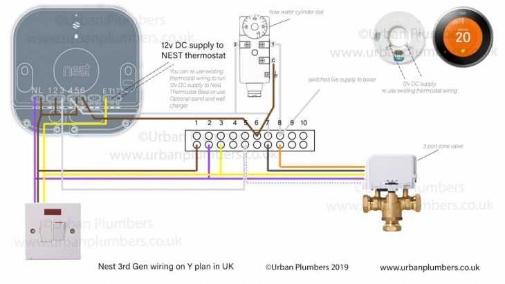Below you will find a full colour schematics for Nest installation on a Y plan heating system. It may be a good idea to print it out if you are planning on installing a Nest thermostat on a Y plan. Click on the picture below to get a full resolution Nest installation schematics.