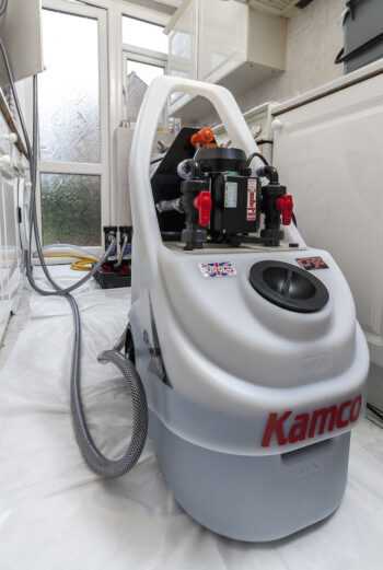 Method – we use a combination of a double magnetic filtration system (Magna Clense) and a power flushing pump (Kamco CF90), cleaning chemicals (Kamco FX2 or Hyper Flush) and a radiator agitator for the best possible results on your power flush.